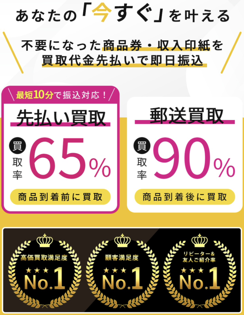 | 買取商品 | 全国百貨店共通商品券や収入印紙など |